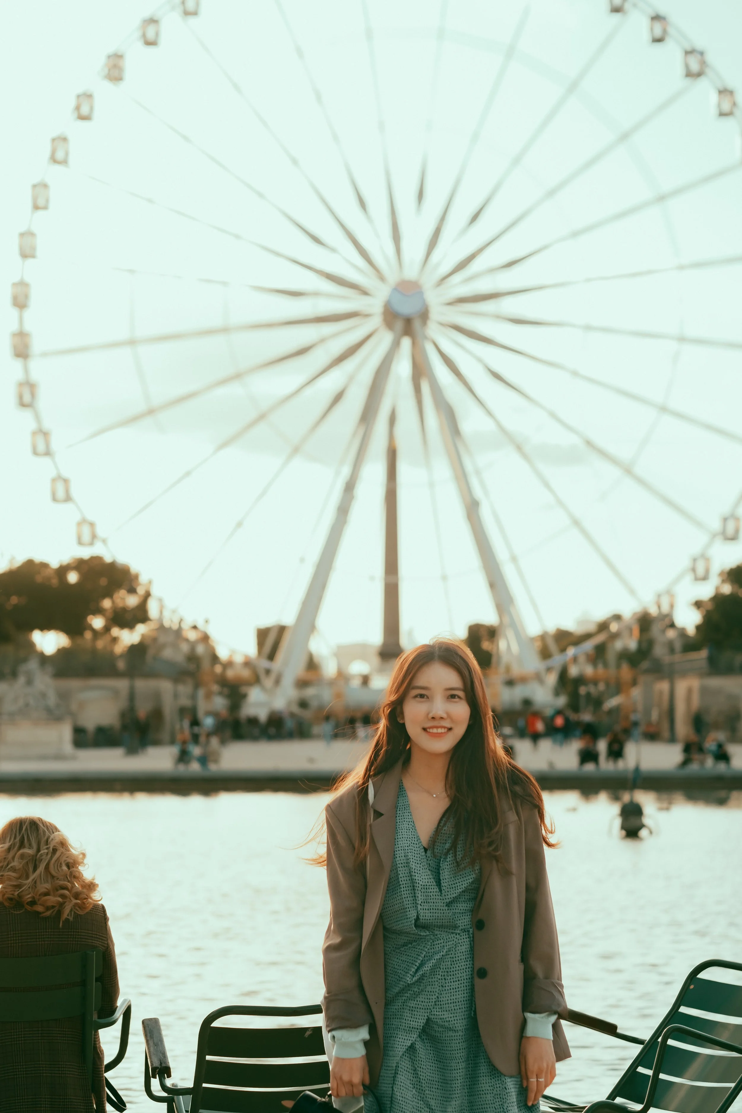 I captured a moment of serene contemplation, as Mijin sat quietly by the fountain's edge. The backdrop featured the iconic Ferris wheel at Place de la Concorde, a gentle reminder of Paris's playful spirit amidst its classical beauty.